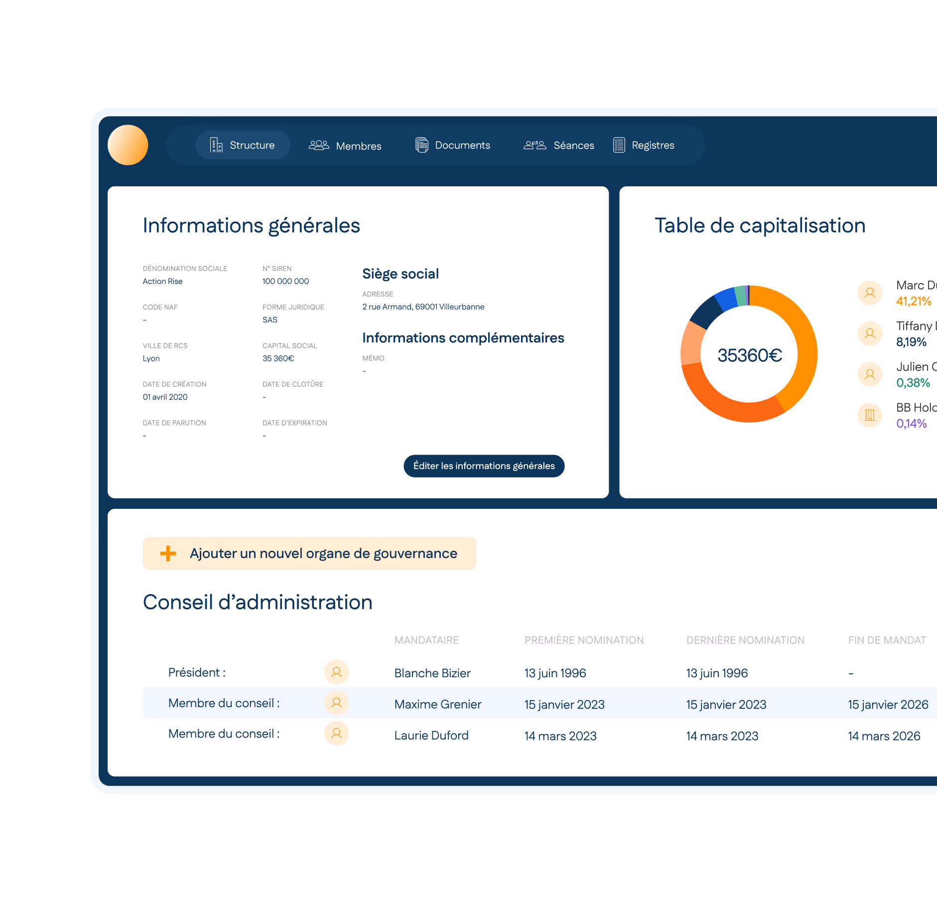 Nous avons commencé par utiliser Ubikap pour la tenue des assemblées générales. Très vite, on a également géré nos registres légaux sur la plateforme.