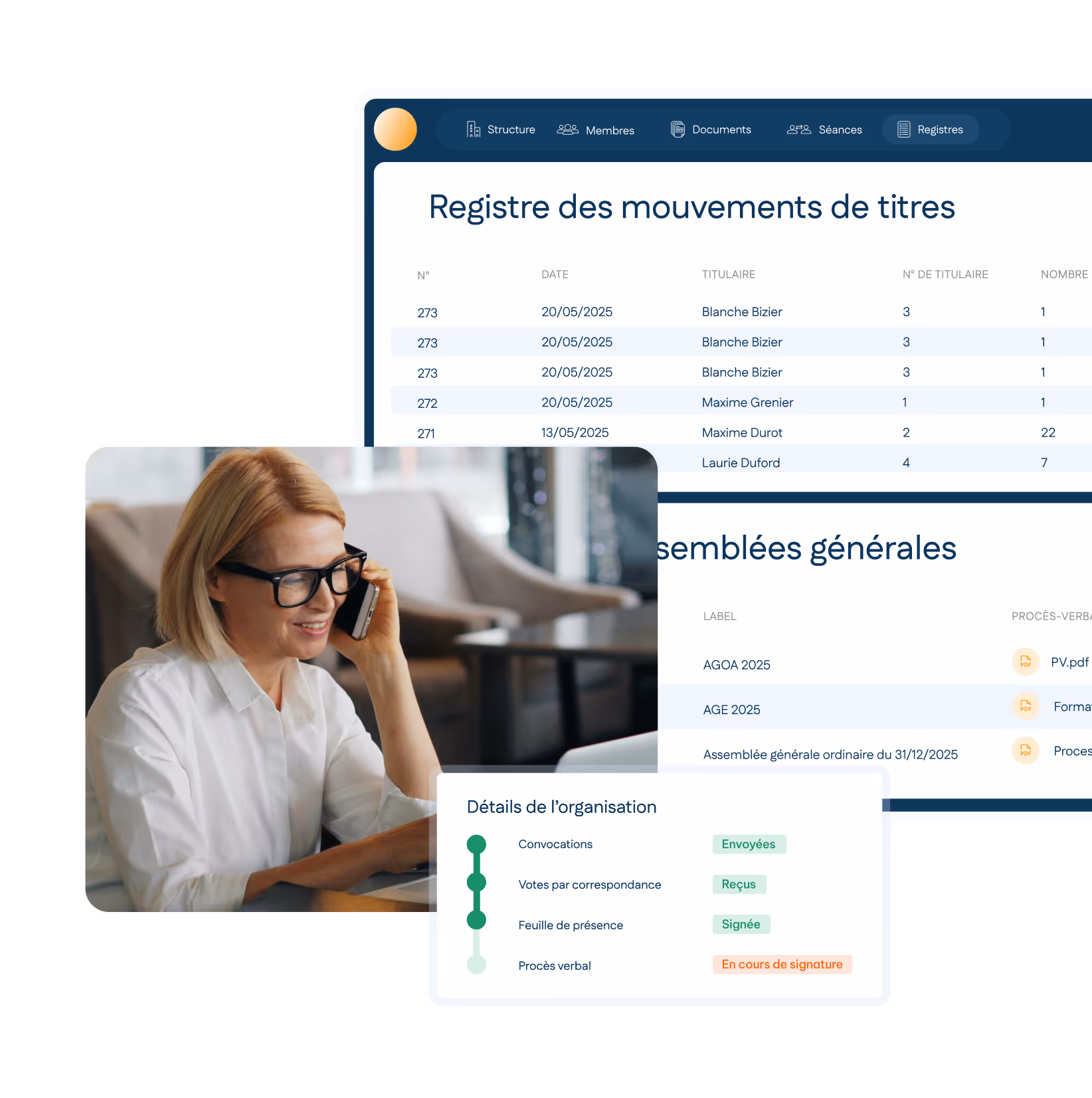 Ubikap vous assiste dans l’organisation, la tenue et la clôture de vos assemblées générales en présentiel, à distance, ou les deux à la fois. Pour ne plus perdre de temps sur les tâches administratives, concentrez-vous sur l’expertise juridique et automatisez le reste.