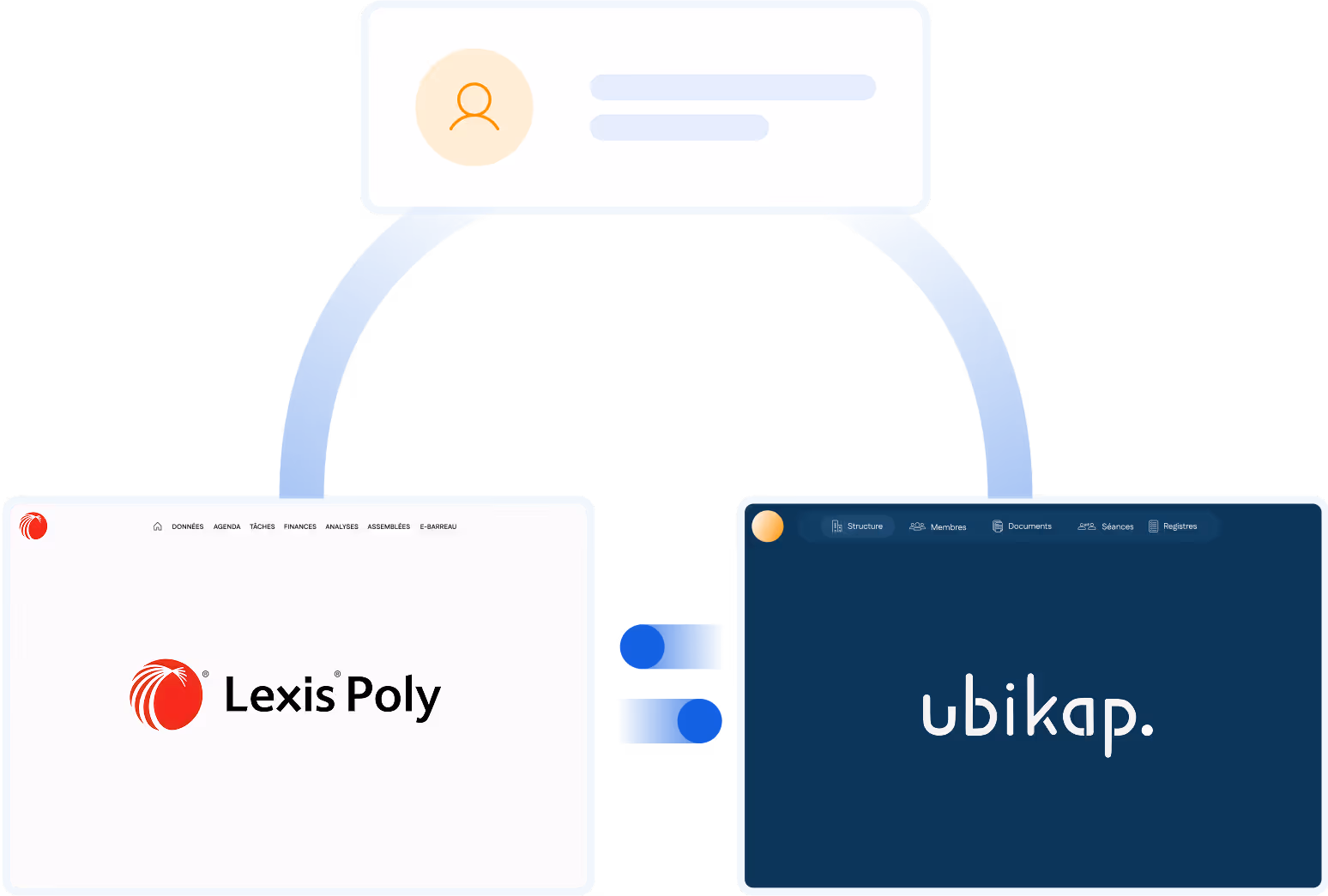 Avec cette interconnexion entre la suite Lexis Poly et la plateforme Ubikap, vous pouvez vous connecter aux deux solutions avec une seule et même authentification :