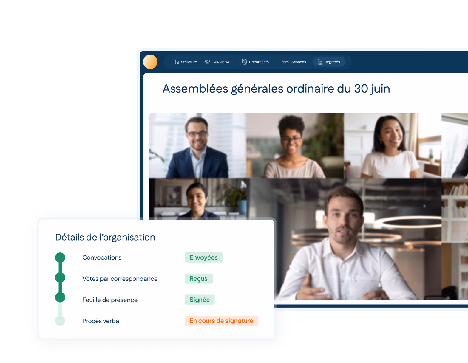 Notre solution incorpore la gestion des assemblées générales de A à Z en plus de son registre dédié.