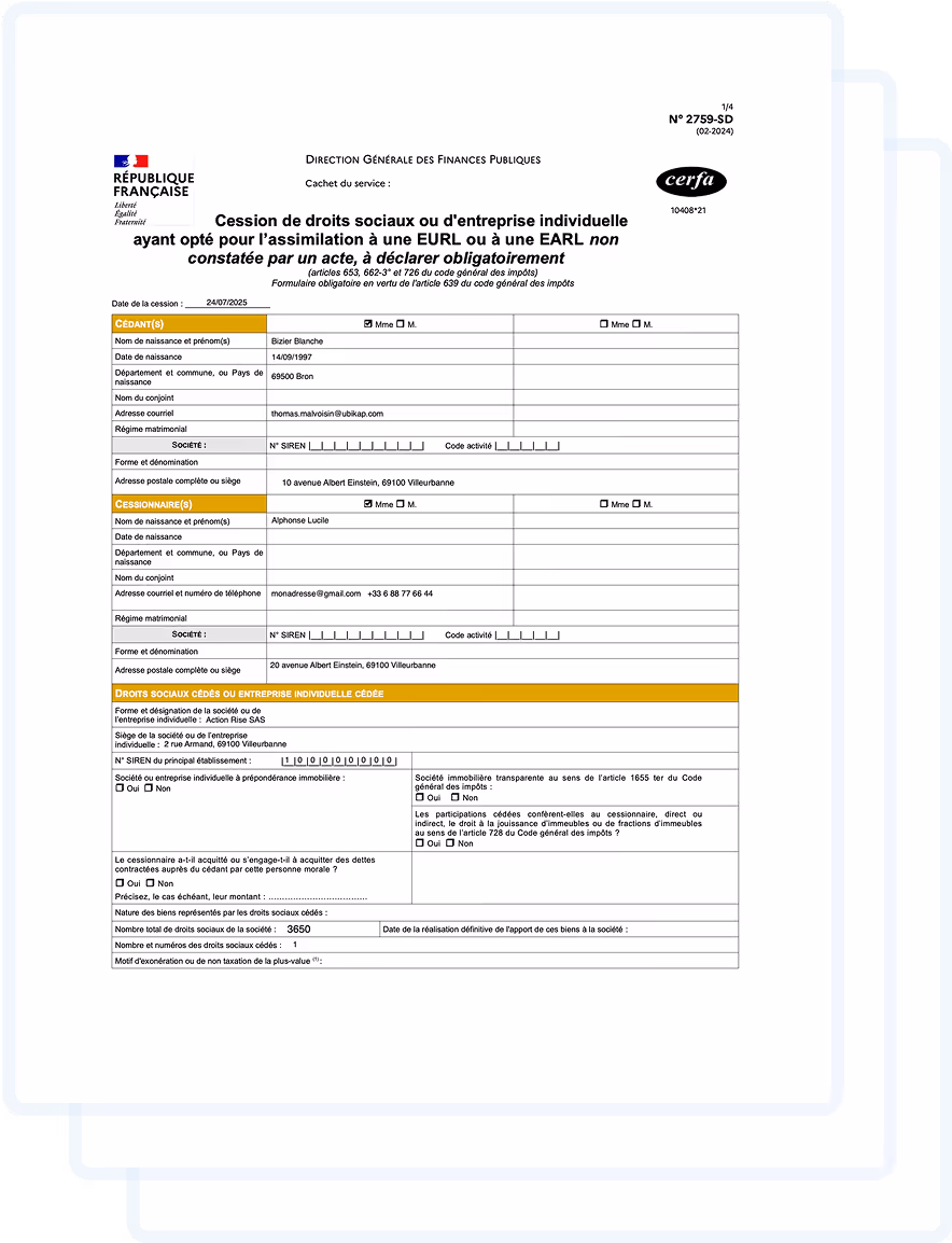 Cerfa 2759-SD et 2735-SD